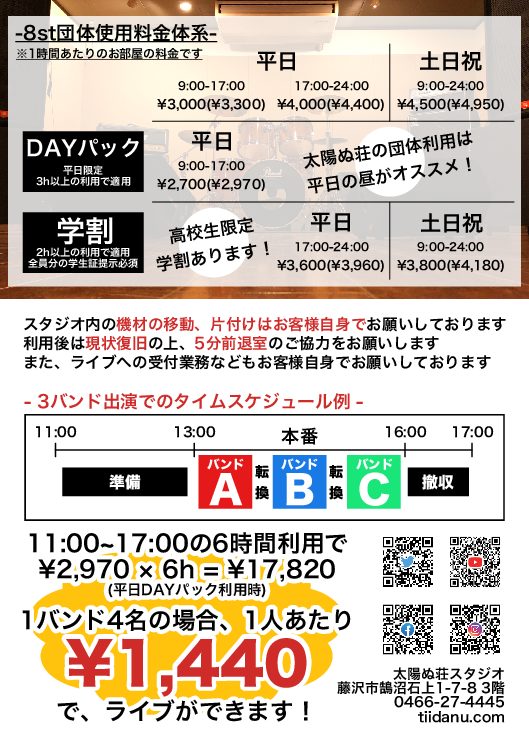 湘南 藤沢駅徒歩圏内の大型音楽スタジオ