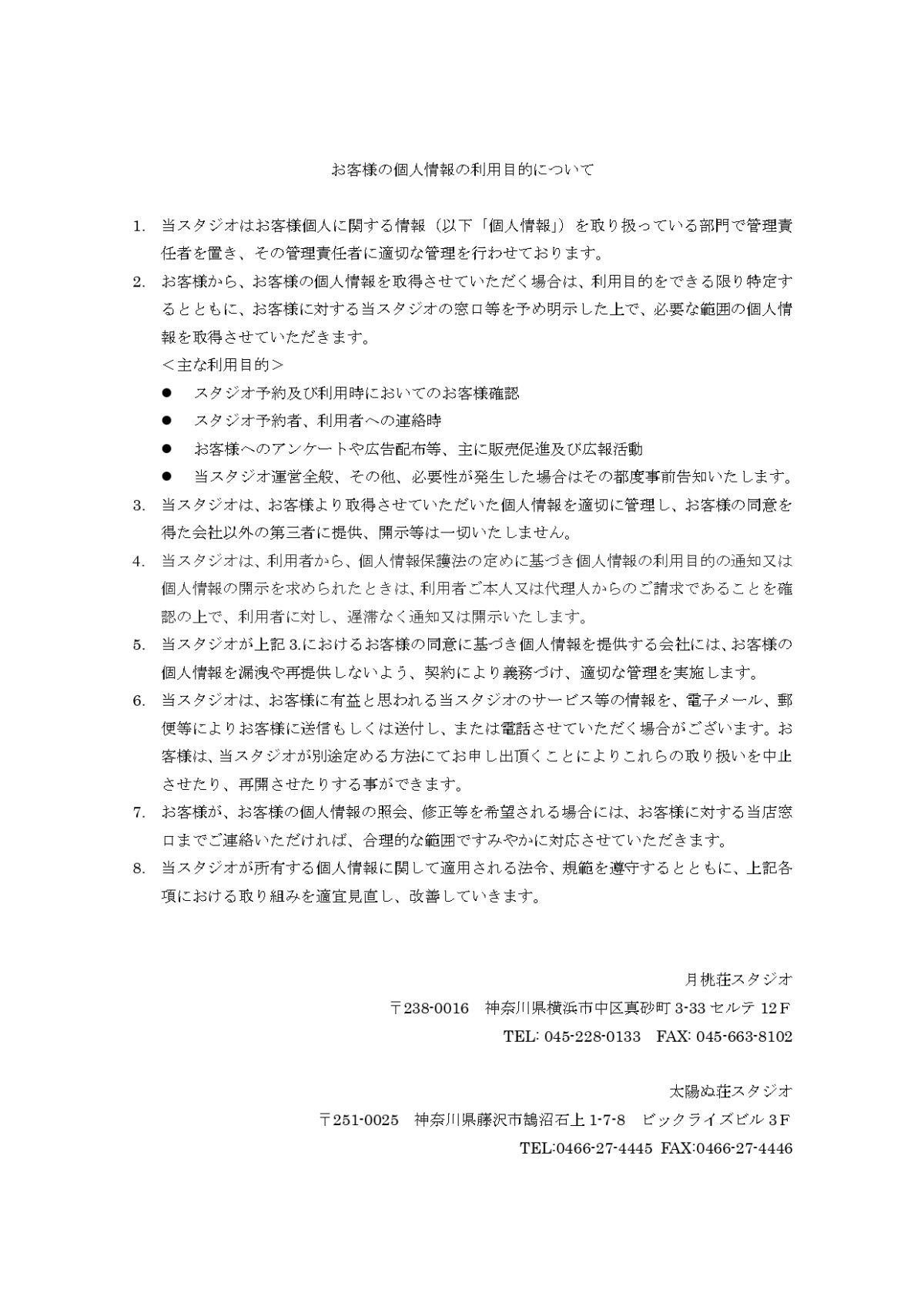 個人情報取り扱いについて
