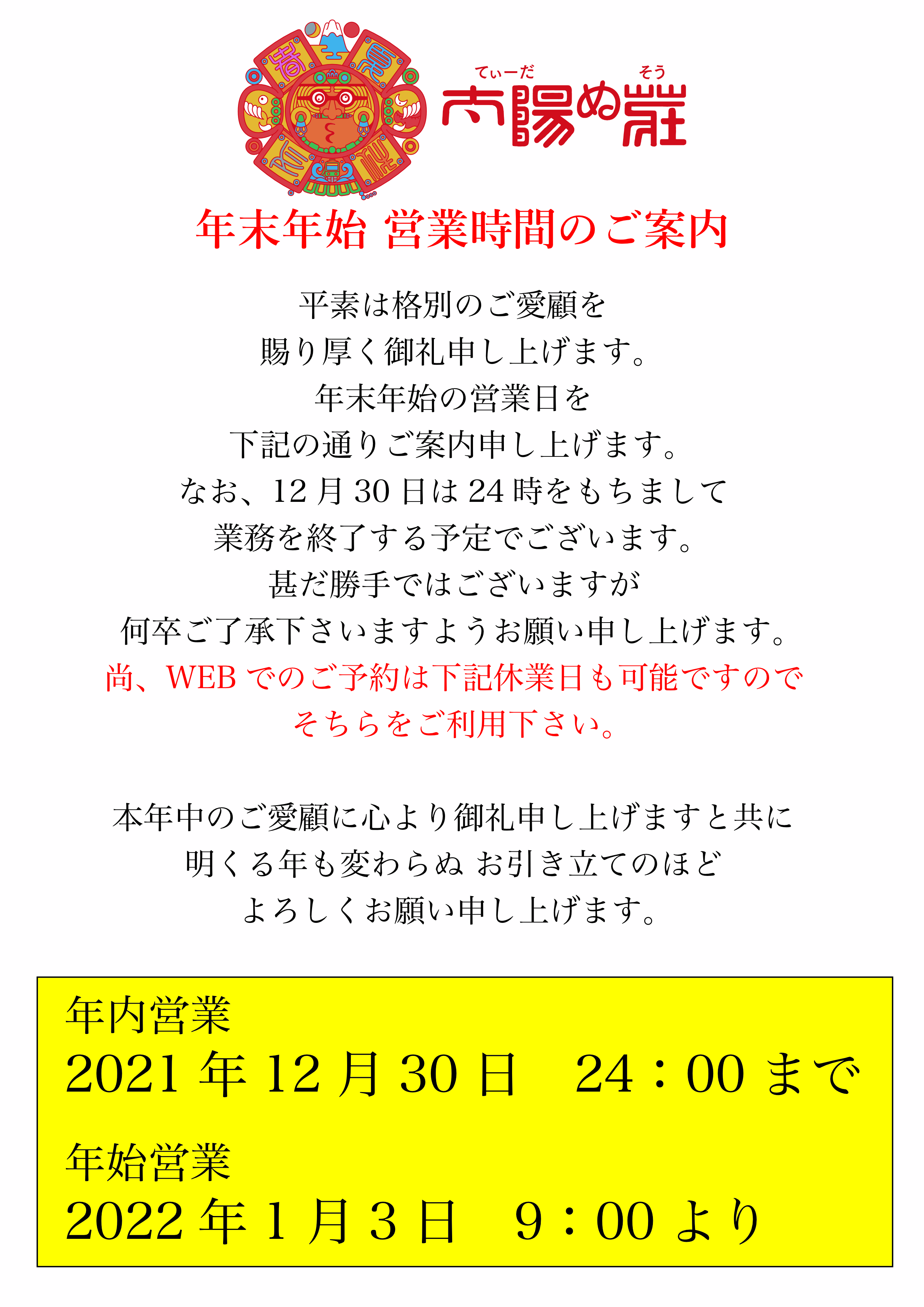 年末年始営業のご案内