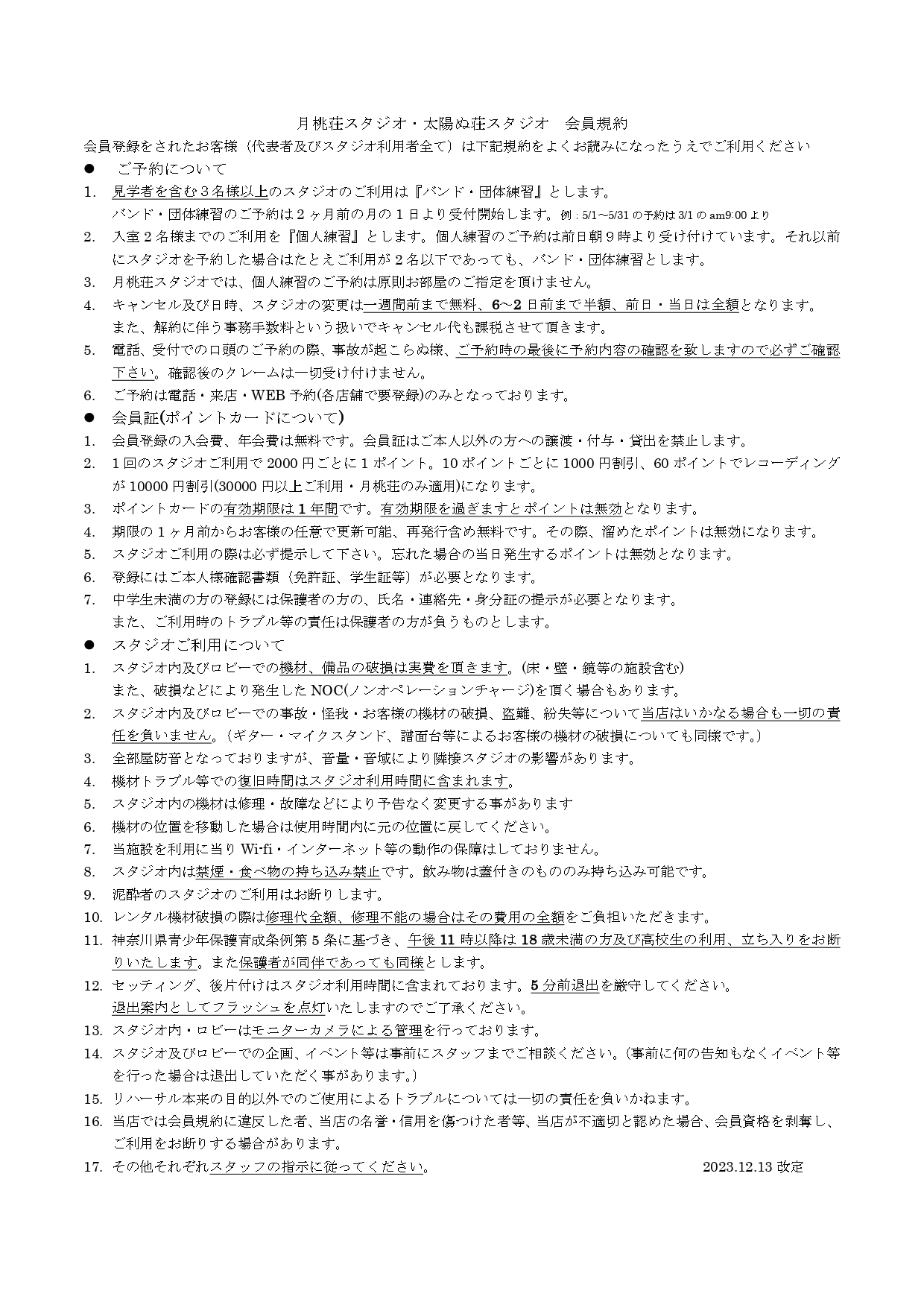 太陽ぬ荘月桃荘スタジオ会員規約20231022_page-0001